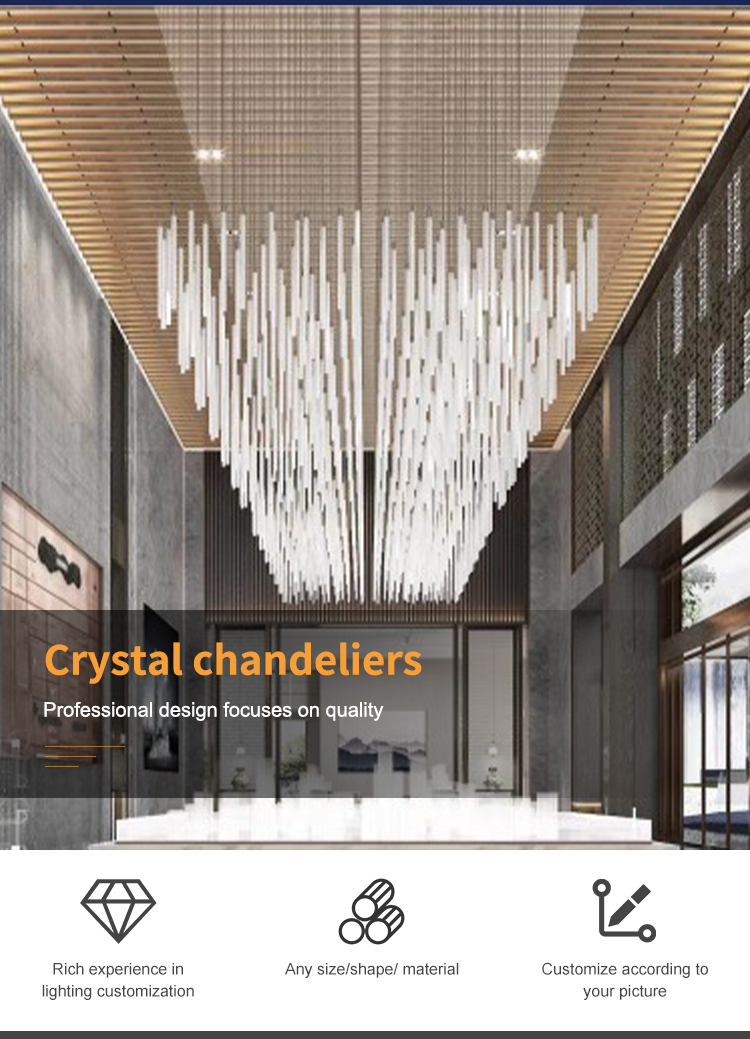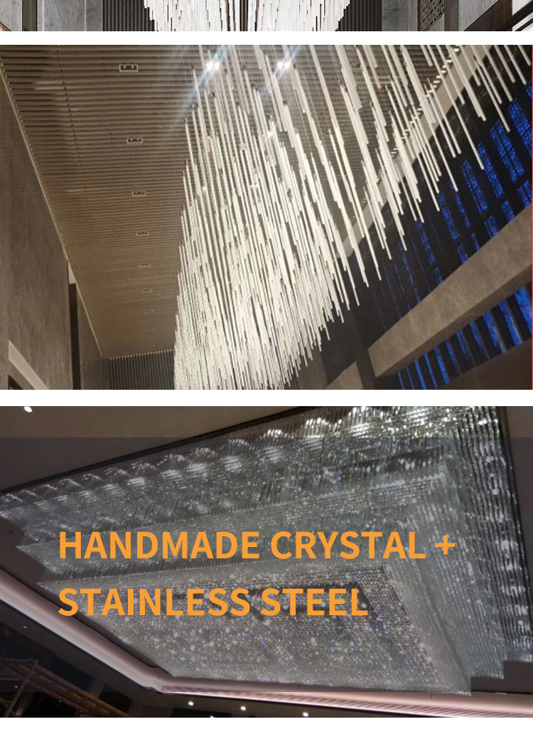 “Exquisite LX22070703 Crystal Chandelier, handcrafted from premium crystal and stainless steel. This striking chandelier features a modern design with elegant cascading crystals, perfect for enhancing the ambiance of high-end spaces such as lobbies and luxury interiors.”